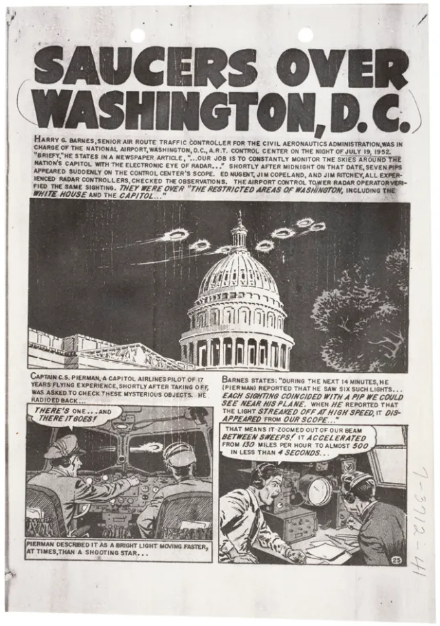 Durante dos fines de semana de julio de 1952, radares civiles y militares detectaron objetos no identificados sobre la Casa Blanca y el Pentágono. Interceptores fueron enviados al aire, hubo avistamientos visuales y la Fuerza Aérea nunca logró una explicación definitiva.