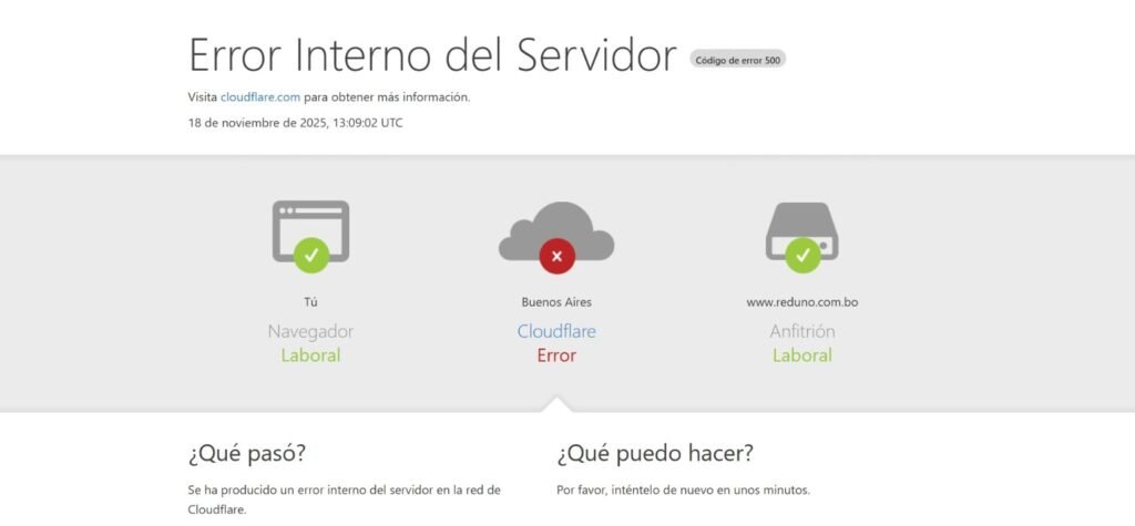 En Bolivia, el problema se manifestó de manera evidente. Diversos portales informativos —incluyendo Unitel, Red Uno, ERBOL, El Deber y Visión 360— dejaron de funcionar momentáneamente, mostrando errores internos del servidor vinculados al código 500.